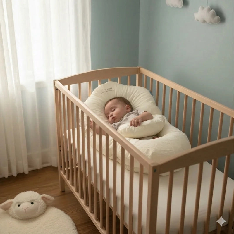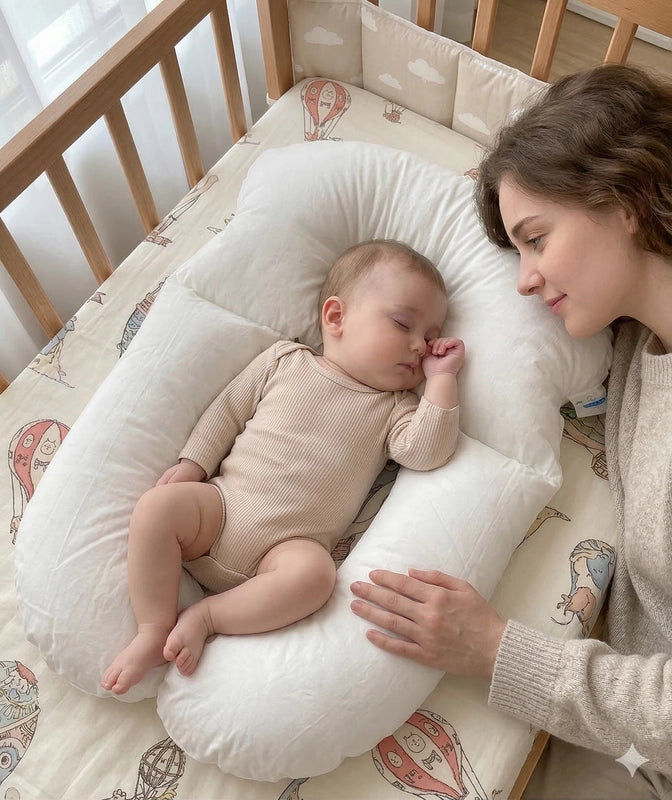 Safety is our top priority. Designed with breathable, baby-safe materials and an ergonomic shape, it cradles your infant securely, minimizing movement and maximizing comfort for a worry-free sleep.
