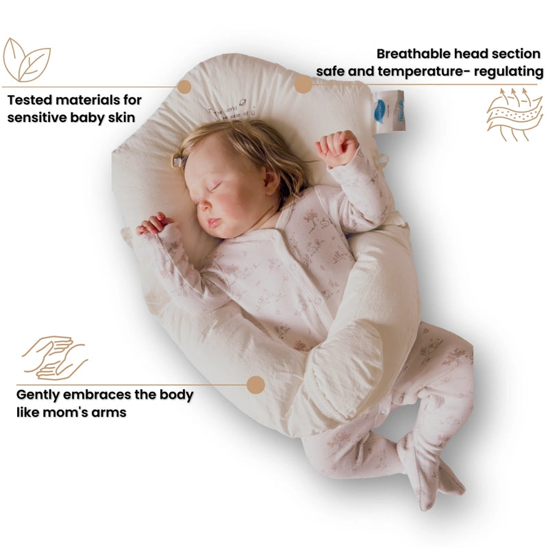 It's all about that cloud-like softness and gentle, ergonomic embrace! The BabyHug Pillow cradles your baby in pure comfort, mimicking a loving hug so they feel secure, cozy, and ready for sweet dreams.